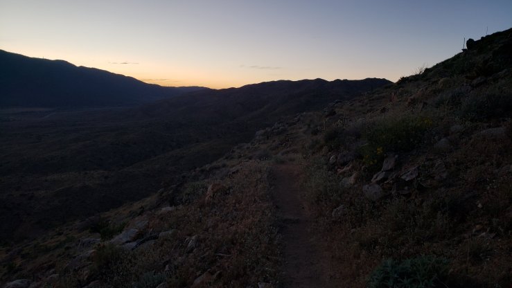 On Day 7, I intended on resupplying at the RV park, but they didn’t have fuel so I needed to hitch to Julian again. As a friend on the AT last year said, “you gotta show a little thigh!” I had lunch while in town and the people eating next to me paid for my lunch without saying a word! Really awesome surprise. Day 7 ended with an 8 mile hike to mile 85.3. We left Scissors Crossing around 4:30 pm and finished the hike under moonlight. It was a beautiful, warm night and we enjoyed wine and the moonlit mountains all around. Overall a great day!