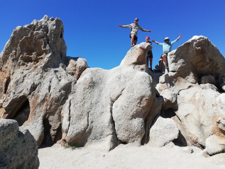 Our plan for day 9 was to hike the 8.4 miles to Warner Springs at mile 109.5. After a brief climb through desert scrub and chaparral, we walked into a gorgeous meadow of wildflowers, surrounded by the mountains of Southern California. We made our way to Eagle Rock, a large rock formation resembling an eagle. After getting pictures, we finished the hike into Warner Springs. The Warner Springs community resource center offers many services for hikers, including camping, a small resupply, charging stations, bucket showers and laundry, and an outfitter is onsite. We relaxed in the afternoon, and enjoyed a free dinner of vegetarian chili provided by some trail angels. I counted over 50 tents set up in the evening.