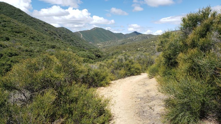 We left Hiker Heaven on day 40, making our way through Agua Dulce on a long road walk. Once we rejoined the trail, we had a bit of a climb for a few miles. The trail made its easy through green valleys as we progressed. It was a cloudy day, a bit chilly and we were feeling the laziness of a zero day. It’s about 24 miles from Hiker Heaven to Casa de Luna, which we wanted to split into two days, so we hiked only 11.1 miles to a campsite next to the road (but hidden by some trees and large bushes) at mile 465.5. This left 12.8 miles to hike the next day.