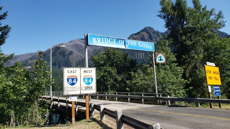 Day 104 would be the last hiking day in Washington. We had 25.3 miles to hike to get to the Bridge of the Gods, which spans the Columbia River and crosses into Oregon. There were a few nice views after the big climb of the day, but otherwise the day was spent mostly on cruisy trail through the woods. As I descended towards the Columbia and therefore sea level, the temperature soared and it felt sweltering under the sun. I made it to the highway and quickly got a hitch into Stevenson, where Sunny, Inge and I had a hotel reserved for the next two nights. We did laundry and showered before getting beer and snacks at the grocery store, and tacos from a taco truck. We spent the rest of the evening relaxing at the hotel.